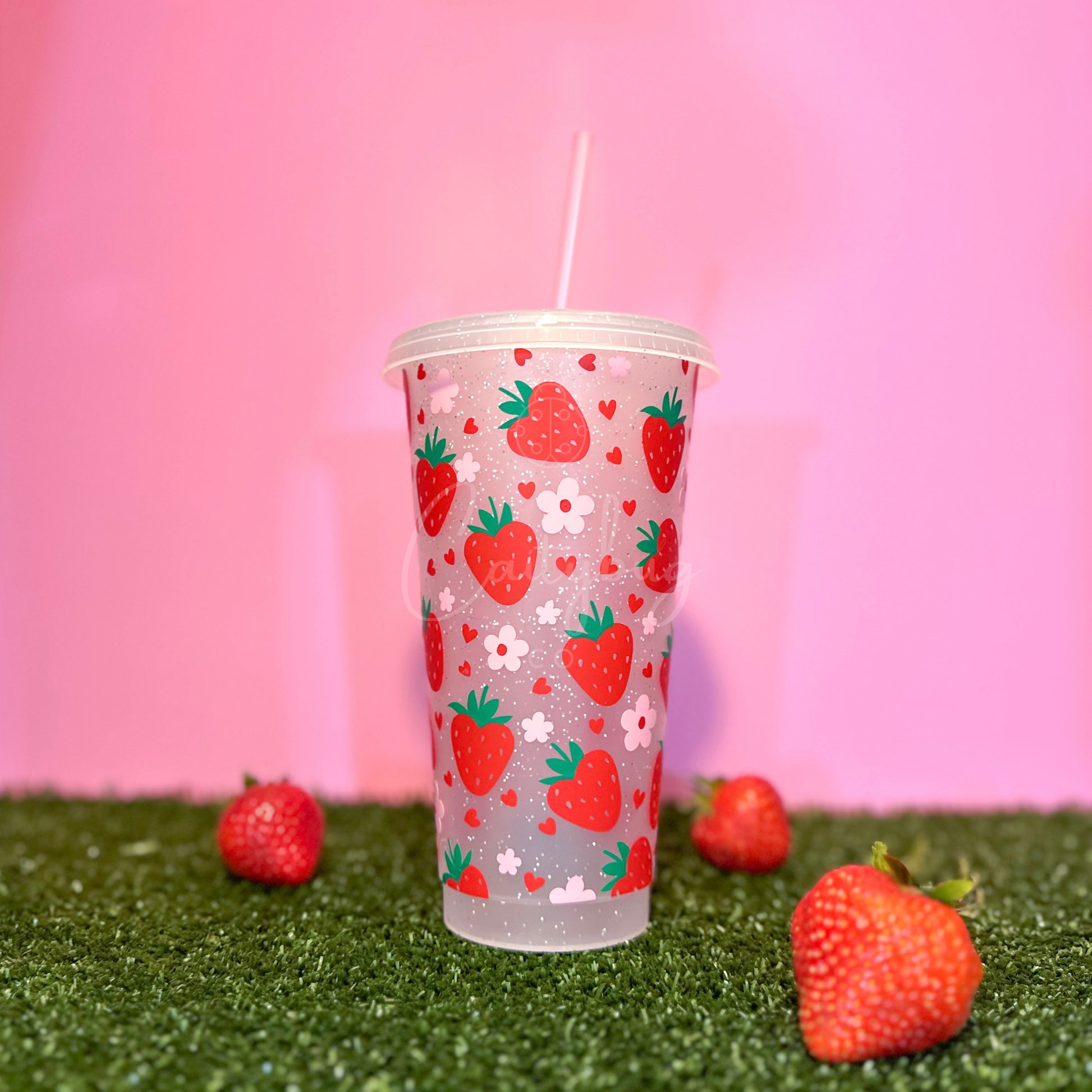 🍓 Includes ONE 24 ounce plastic cold cup with lid & straw